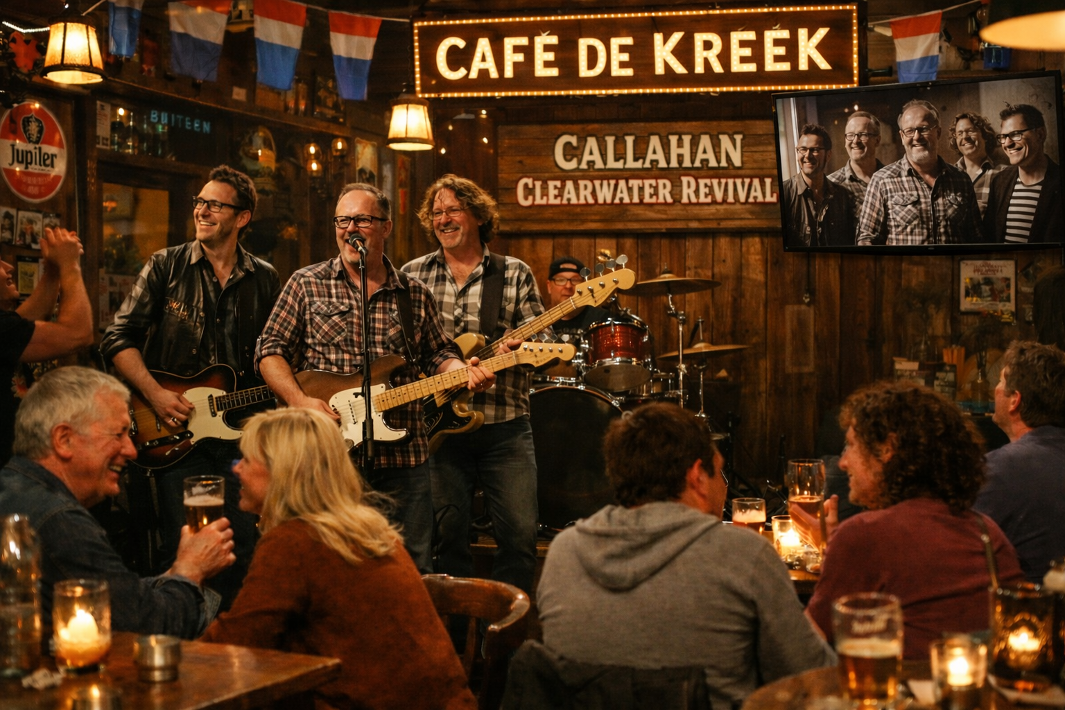 Met Callahan Clearwater Revival ga je terug naar de tijd van de onvervalste Roots Rock. Klassiekers als Fortunate Son, Suzie Q, Born On The Bayou, Bad Moon Rising, Hey Tonight en Down On The Corner maken allemaal onderdeel uit van de eindeloos lange lijst met hits van Creedence Clearwater Revival. Wanneer je je ogen sluit dan hoor je de vroegere John Fogerty en CCR. De muziek wordt vanuit de basis overgebracht door de vier Achterhoekse muzikanten van Callahan Clearwater Revival: Jan Willem Lichtenberg (zang/gitaar), Leon Huitink (drums), Marc Schenk (gitaar), Erikjan Luiten (bas).