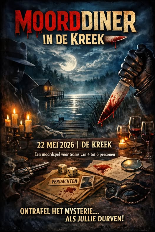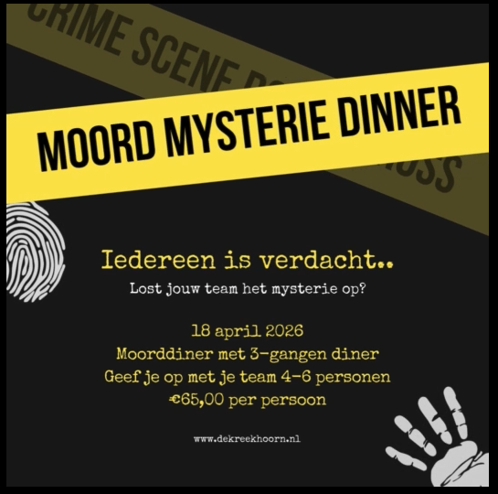 Kosten all in : Diner plus Moordspel € 69,00 p.p. Excl dranken